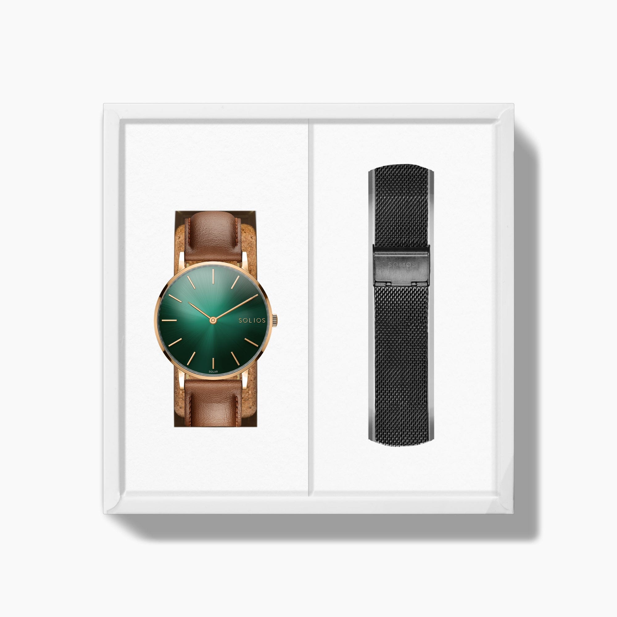 Solar Classic, édition Rainforest par Solios : une incarnation de l'élégance, de la durabilité et de l'innovation, désormais disponible dans un ensemble polyvalent proposant deux bracelets pour chaque occasion. Découvrez l'essence du style et de l'éco-conscience avec cette montre pensée avec soin.