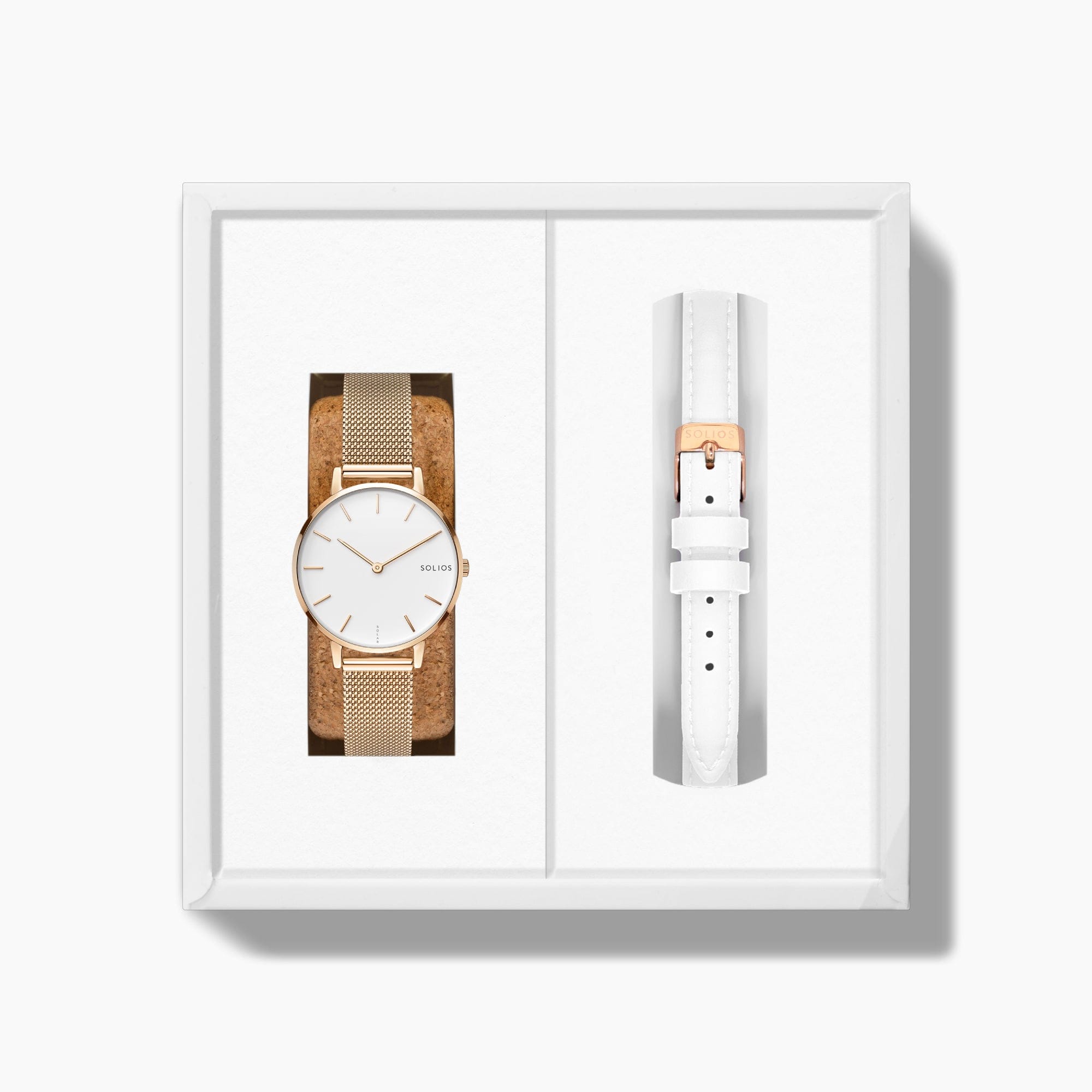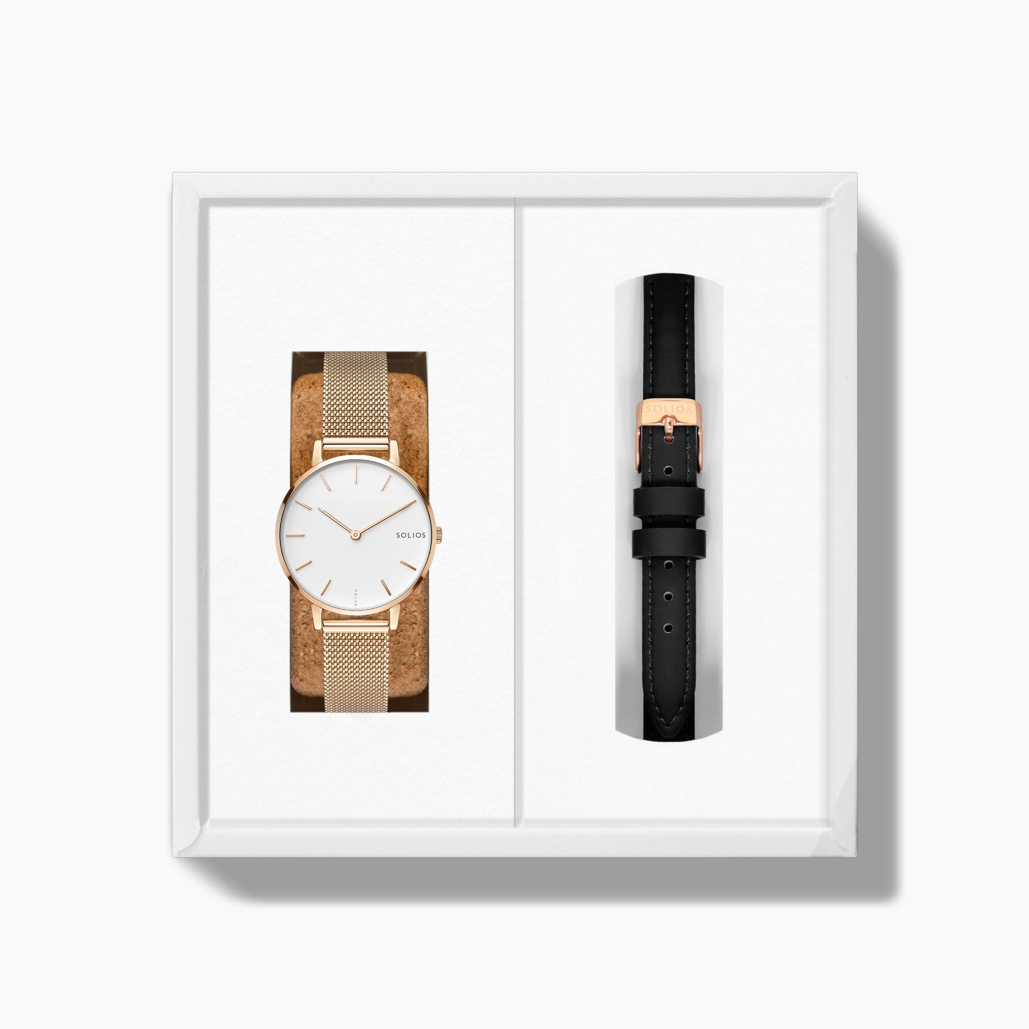 Découvrez la Solar Mini par Solios - conçue pour les poignets plus petits, alliant style et durabilité, désormais disponible dans un ensemble polyvalent proposant deux bracelets pour chaque occasion. Cette montre incarne l'élégance, la technologie solaire et la durabilité dans un format compact.