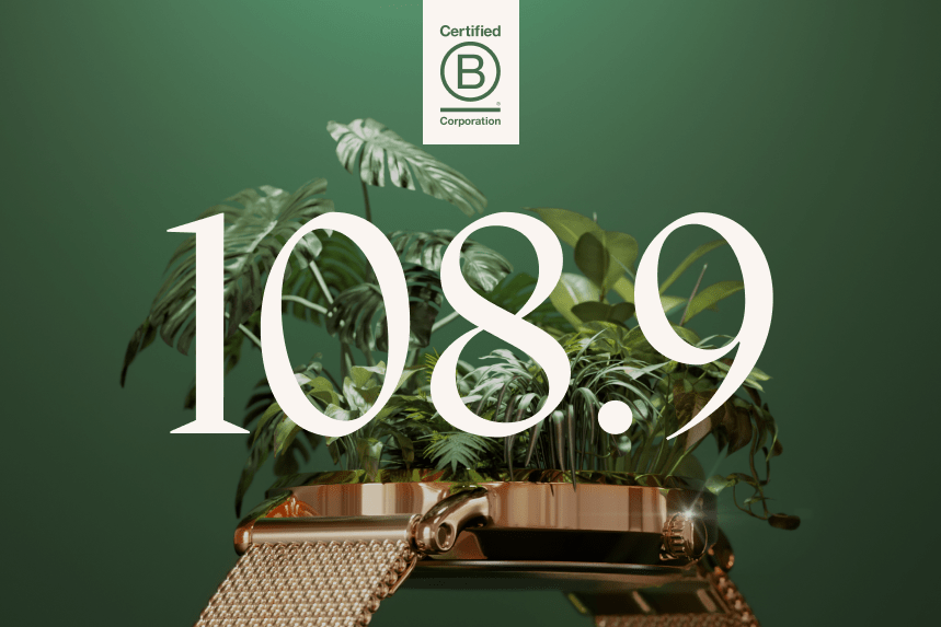 B Corp has officially awarded us with a score or 108.9. Meaning not only did increase our already impressive score but we are now the highest rated watch company.