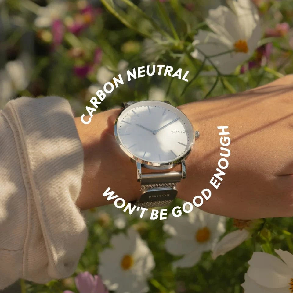 Explore Solios' sustainability practices on this page, where we detail our commitment to eco-conscious manufacturing and materials. From our use of recycled stainless steel to our cruelty-free vegan leather straps, we prioritize sustainability in every aspect of our production process. Discover how we're reducing our environmental footprint and creating watches that make a positive impact on the planet.
